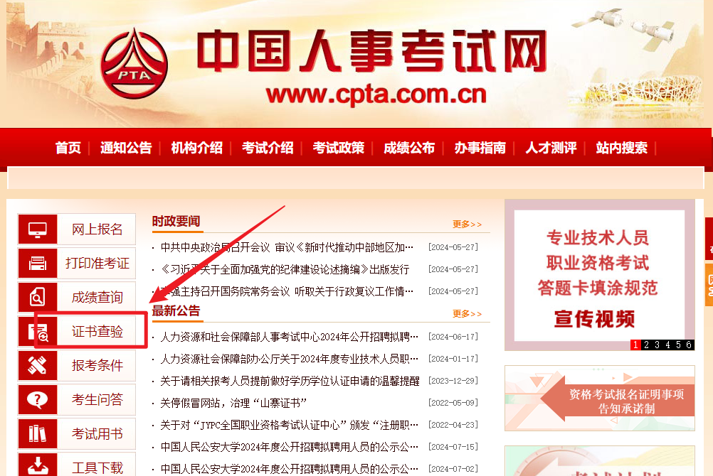 ✅第一步,进入中国人事考试网,点击【证书查验】