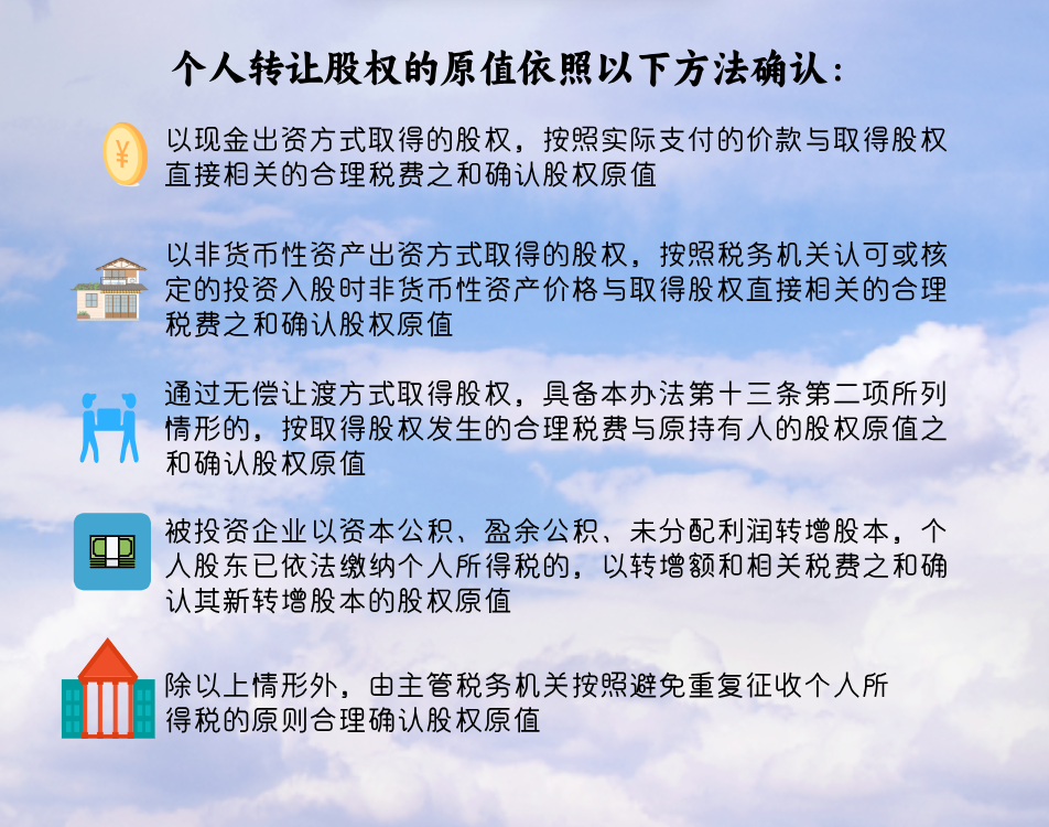 (五)除以上情形外,由主管税务机关按照避免重复征收个人所得税的原则合理确认股权原值。